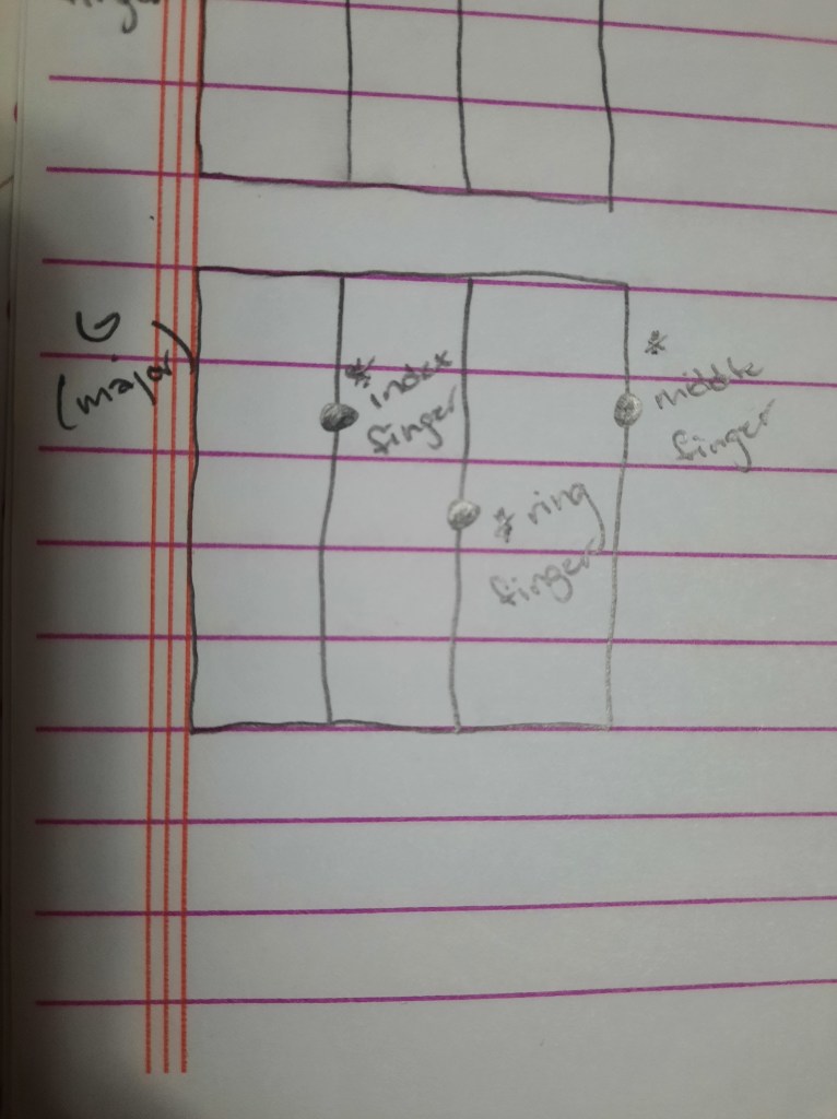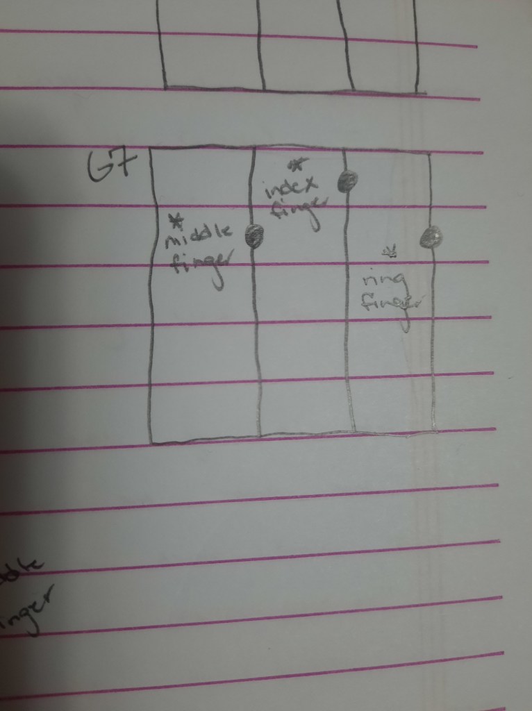 The last note I’ve learnt is the G major. This is another note that requires three fingers.